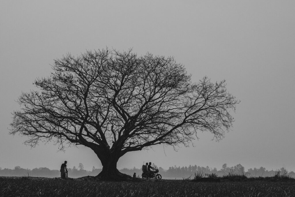 Yet, together they coexist. And that is the beauty this frame offers—life’s contrasts finding harmony under a tree that has silently watched generations pass by.